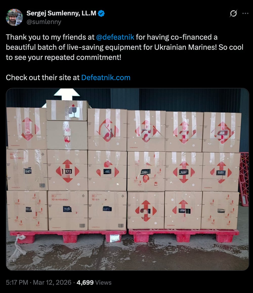 We contribute to fundraising campaigns that supply aid and equipment to Ukrainian defenders.